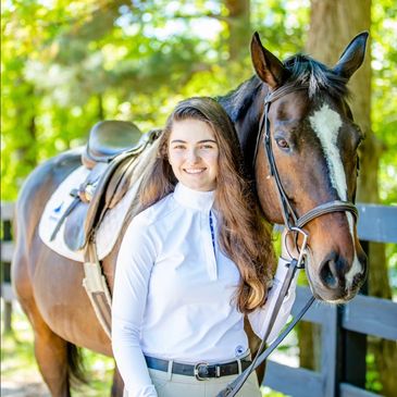 "Hey everyone! I’m Carly, a rising junior from Northern Virginia majoring in Biology. I’ve been riding for as long as I can remember and currently compete in hunters and equitation with my horse, Spartacus.